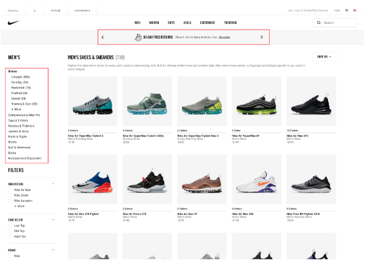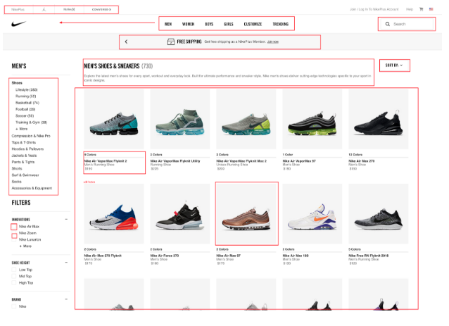 Let’s look at someone like Nike. You see their site (and maybe they do too) and it’s difficult to notice items that can be tested. To you, you may identify one or two things to improve or experiment with: