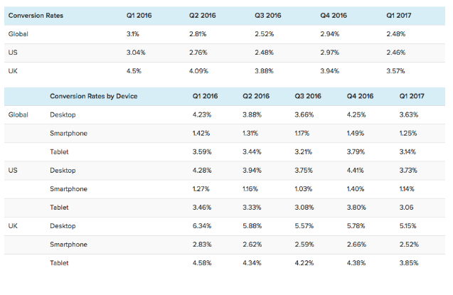 In addition to this idea, this year alone shows how much room for improvement there is among e-commerce websites. The Monetate Ecommerce Quarterly released a December 2017 report on conversion segmented by devices and media for large e-commerce brands, showing how there is always room to hit a 5% mark, even if the average lies around 2-3% (especially for mobile devices, I can’t stress enough how important mobile optimization is in 2018):