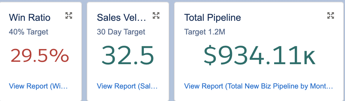 Following the same guidelines as the total pipeline, new business deals land in only 2 places, “close won” or “close lost”. Either way, your pipeline gets impacted and will decrease when either result happens.  As such, having a new business pipeline growth target monthly to offset the decline in total pipeline is critical to consistent and predictable sales performance.  Setting this KPI as a key leading indicator will help you avoid getting into trouble from a sales perspective and also help you identify when it’s time to scale and add another sales rep to your team or adjust your prospecting strategies and marketing efforts to meet the necessary demand for your growth targets.