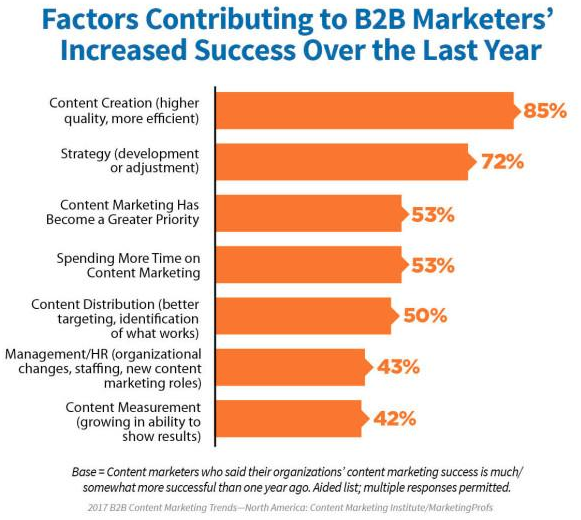 In fact, around 85 percent of B2B marketers consider better content creation to be the number one factor resulting in augmented success.