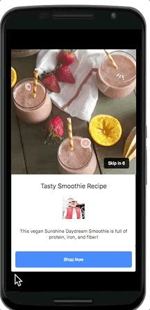 In-stream videos are video ads that are shown before, during a break, and/or after organic video content (Pre-roll, mid-roll, post-roll). These videos must have sound and be 5-30 seconds for just in-stream placement or 5-120 seconds with automatic placements. These video ads are ideal for brand awareness rather than direct response since there will be no direct link for the user to click. Considering you are disrupting the user’s experience in enjoying organic content, be sure to keep your video less salesy, and only target hyper-relevant audiences.