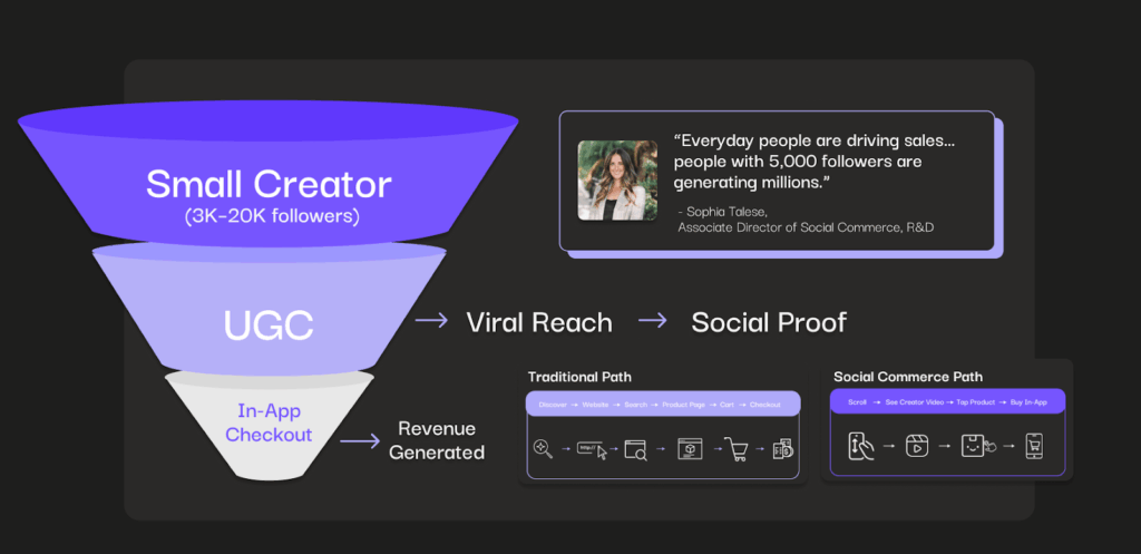 Influencers and UGC continue to be central to social commerce. Influencers—particularly micro-influencers—have the ability to drive purchases by creating authentic content that resonates with their followers. Talese elaborates, “The rise of creator-led content is a big part of social commerce. It’s not just about big-name influencers anymore; it’s about the content creators whose stories feel more authentic and relatable.”