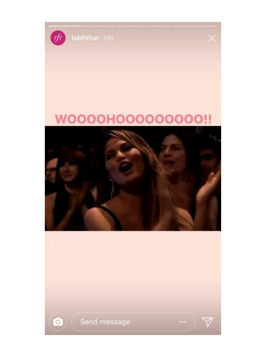 FabFitFun has used GIFs in order to excite their audience about product releases and giveaways. They have actually gone beyond stickers by using GIFs as video assets like the one below. This is not only eye-catching and fun but it also directly relates them to their audience of millennial women. Through this incorporation, their audience feels closer to the brand and is enticed to continue to be an active follower of their account considering their fun and like-minded content.