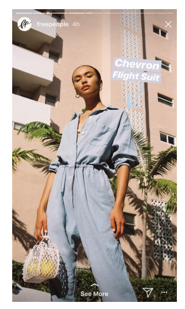 Instagram added four new fonts to use in Stories, which include Modern, Neon, Typewriter, and Strong. Try the new fonts to keep your content fresh like Free People’s Story below. Moreover, incorporating lifestyle imagery tends to yield better results over product imagery without the human element.