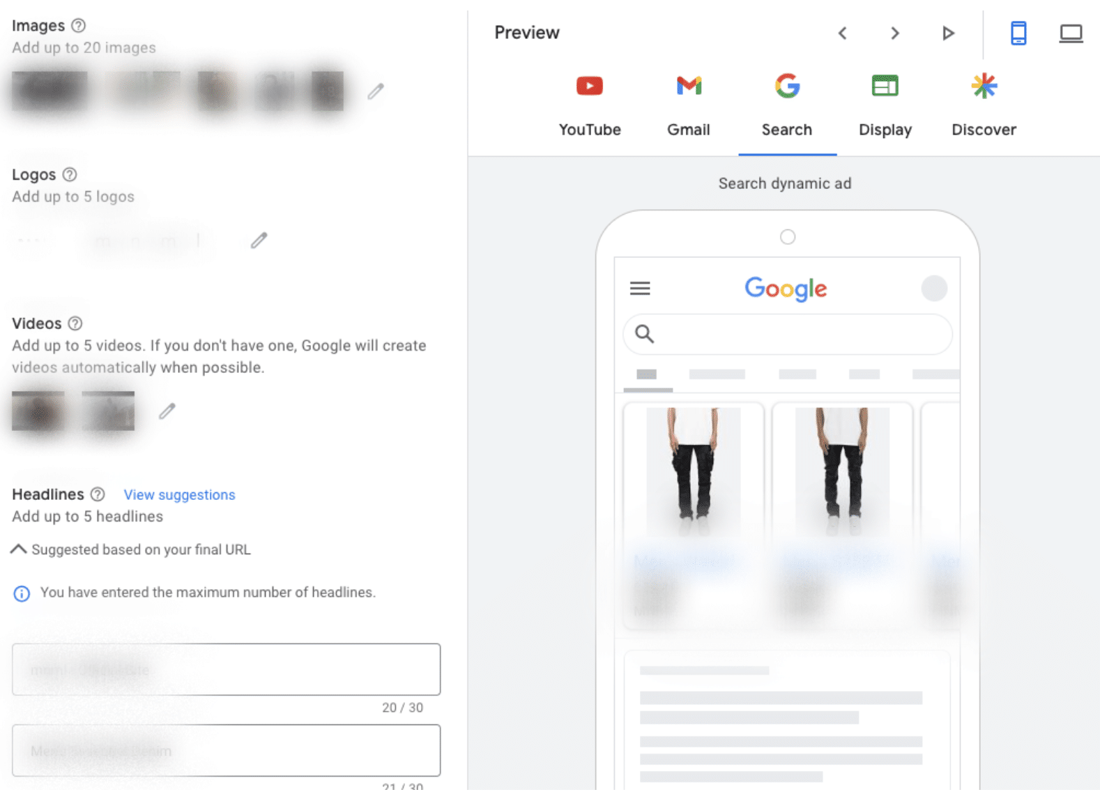 You’re able to feed the engine the following creative that it will optimize across the Google ecosystem: