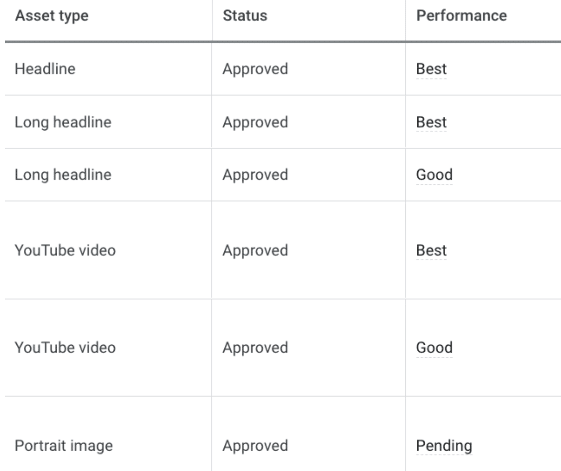 Google recommends you refresh your asset group’s assets every 4-6 weeks or when you see CTR declining. Always try to achieve your ad’s “Excellent” rating before saving. Then when you’re digging into your asset group’s Insights page, you can see how each headline, description, image, and video performed within the Best, Good, and Poor rating system. Those are good indicators of what exactly you should refresh when checking campaign performance.