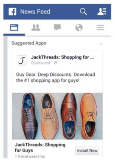 The screen capture of JackThread’s Facebook ad below is a fine example of a simple, clear and compelling messaging. The first two words tell us immediately who this is for and why this demographic needs to pay attention. The next two words offer an incentive: Deep discounts. Finally, the last sentence conveys how men can buy gear at a great discount with a call to action (more on that later). Notice how short and sweet this ad is, and how quickly we can decipher who it targets, the benefits to its audience, and how they can get guy gear at a discounted price.