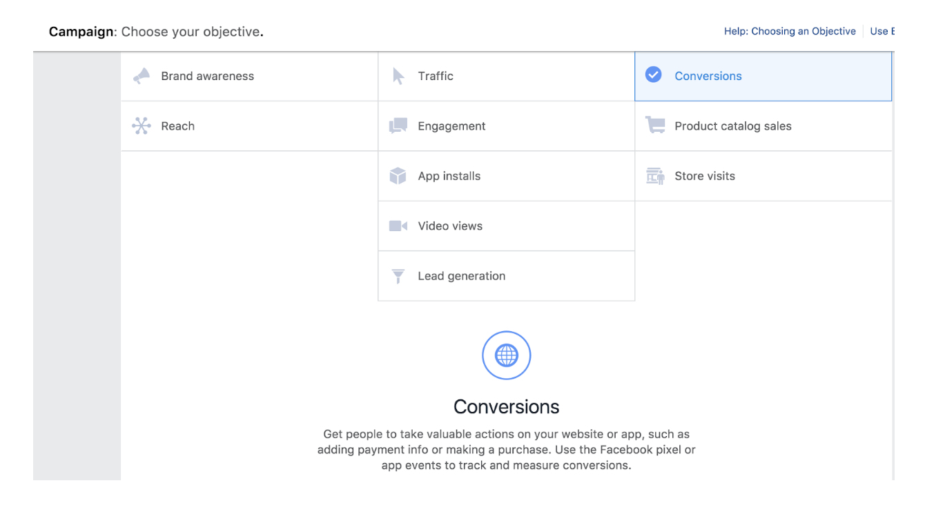 Let’s start at the basics. There are multiple Campaign Objectives that Facebook allows you to choose from based on what you are ultimately trying to accomplish. I am going to take you through an overview of the Conversion Objective and introduce you to a solution for an age-old problem with conversion campaigns.