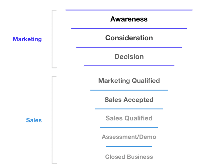 First, let’s dive into responsibilities as it relates to the user journey. The sales department, or team, is responsible for managing incoming leads, determining the quality of those leads, working the lead through the decision making process to becoming a closed deal, and potentially driving upsells or prioritizing the customer relationship and extending the customer’s lifetime value.