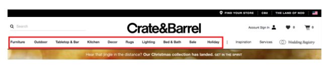 For a Crate&Barrel that would be their main navigational pages. They would want to build out content around each of the main navigation and subcategories they offer. You would want to build clusters around: